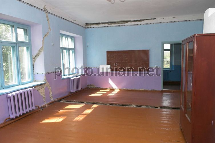 Напівзруйнований унаслідок повені клас в районній загальноосвітній школі І-ІІІ ст., у с. Пороги, Ямпільського р-ну, у середу, 10 вересня 2008 р. Цього дня Голова Верховної Ради України відвідав з робочою поїздкою Вінницьку область. У с. Клембівка Ямпільського району Яценюк оглянув поле цукрових буряків і ознайомився з проблемами цукрової галузі. Також у цьому селі він провів зустріч з керівниками органів місцевого самоврядування, виконавчої влади районів, що постраждали від повені. У Ямпільському районі голова ВР також ознайомився з перебігом робіт з ліквідації наслідків повені у місті Ямпіль та зустрівся з жителями потерпілого мікрорайону. На міжнародному пункту пропуску “Ямпіль-Косеуць” Яценюк ознайомився із станом відновлювальних робіт, у с.Пороги відвідав дитячу дошкільну установу “Калинонька”, що постраждала від повені. Фото Анастасії Сироткіної / POOL / УНІАН