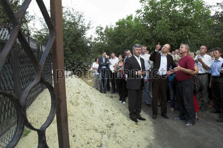 Голова Верховної Ради України Арсеній Яценюк, в центрі, під час ознайомлення з територією, що постраждала від повені, в м. Ямпіль, у середу, 10 вересня 2008 р. Цього дня Голова Верховної Ради України відвідав з робочою поїздкою Вінницьку область. У с. Клембівка Ямпільського району Яценюк оглянув поле цукрових буряків і ознайомився з проблемами цукрової галузі. Також у цьому селі він провів зустріч з керівниками органів місцевого самоврядування, виконавчої влади районів, що постраждали від повені. У Ямпільському районі голова ВР також ознайомився з перебігом робіт з ліквідації наслідків повені у місті Ямпіль та зустрівся з жителями потерпілого мікрорайону. На міжнародному пункту пропуску “Ямпіль-Косеуць” Яценюк ознайомився із станом відновлювальних робіт, у с.Пороги відвідав дитячу дошкільну установу “Калинонька”, що постраждала від повені, а також зустрівся з педагогічним колективом та учнями районної загальноосвітньої школи І-ІІІ ст. Фото Анастасії Сироткіної / POOL / УНІАН
