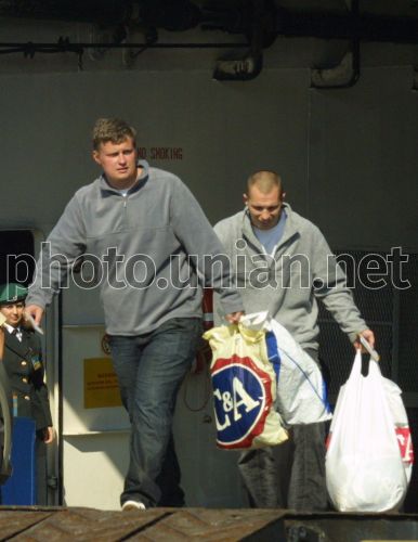 Врятовані із затонулої суховантажної баржі ”Лев Толстой” моряки Денис Ахрамєєв, ліворуч, та Андрій Крижановський в одеському порту, у четвер, 2 жовтня 2008 р. Цього дня на чартерному поромі CALEDONIA в одеський порт повернулися два моряки із затонулого поблизу Болгарії судна «Лев Толстой» - Андрій Крижановський і Денис Ахрамєєв. В суботу, 27 вересня 2008 р., біля берегів Болгарії затонуло українське транспортне судно ”Лев Толстой”, що йшло під північнокорейським прапором. На борту судна знаходилося десять чоловік: капітан (громадянин Російської Федерації) і дев’ять членів екіпажа (громадяни України). За даними представника судновласника, на судні знаходилося п’ять рятувальних плотів. Болгарські рятувальні служби виявили рятувальний буй і пліт з судна «Лев Толстой» в Чорному морі в 30 милях на південь від міста Варни біля мису Емін. Двох українців із затонулого судна на плоту підібрала бельгійська яхта «Міраж». Фото Петра Катіна / УНІАН