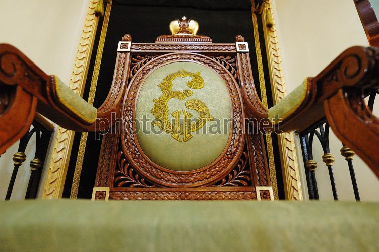FILE Копія "Крісла Імператриці" в Спаському (Єкатерининському) Соборі у Херсоні, у четвер, 30 жовтня 2008 р. У 1781 р. генерал-губернатор Новоросійського краю Григорій Потьомкін вирішив побудувати на місці гарнізонної дерев’яної церкви святого архангела Михайла 1779 р. кам’яний собор. Собор був споруджений в ім’я святої великомучениці Катерини - небесної покровительки Катерини II. Імператрицю, яка відвідала собор, збентежило таке очевидне присвячення їй церкви, і вона нарекла собор Спаським. Спеціально до приїзду Катерини в соборі, поруч правого стовпа проти вівтаря було встановлено крісло. Це крісло стало справжньою реліквією собору, але було загублене в ході історичних подій ХХ ст. Зараз у Спаському Соборі виставлена копія "Крісла Імператриці". Її виготовили херсонські умільці. Крісло виконане за зразком експонату Державного Ермітажу (Санкт-Петербург, Росія) - крісла кінця XVIII ст., і повністю відповідає стилю, що домінував з єкатерининських часів в Росії, - класицизму. Крісло обтягнуте сукном зеленого кольору, поширеним ту епоху, а в овал спинки вписано вензель імператриці Катерини II. В процесі виробництва використані цінна порода червоного дерева сіпо, саєрлак на основі природних складових, ґрунти шеллаки на основі ялицевої смоли, індійська парча, позолочена нитка. При виготовленні всі роботи проводилися уручну. Застосовані технології: ручне фігурне об'ємне різьблення з використанням розгорненого кута і дерев'яних механічних кріплень, ручне шліфування, художня вишивка гладінню золотом, 8-разове лакування та нанесення сухозлітного золота. Фото Віталія Данильченка / УНІАН
