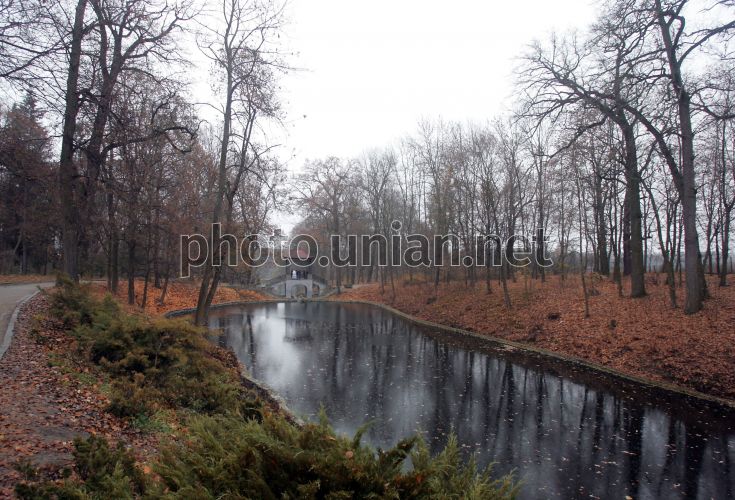Поповичів став і Китайський місток в дендропарку ”Олександрія” в Білій Церкві, в неділю, 16 листопада 2008 р. Дендропарк ”Олександрія” займає площу 201,5 га і є найбільшим в Україні. На його території росте більше 600 видів і форм деревної і чагарникової рослинності, а також близько 700 видів трав’янистих рослин. Дендропарк ”Олександрія” входить до туристичного маршруту ”Золоте кільце Київщини”, що був відкритий в рамках підготовки ЄВРО-2012. Фото Олександра Синиці / УНІАН