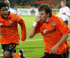 Півзахисник ФК ”Шахтар” (Донецьк) Жадсон (№8), в центрі, веде боротьбу за м’яч із гравцем ФК ”Львів” (Львів) під час матчу 2-го кола 16-го туру Прем’єр-ліги України з футболу між ФК ”Львів” (Львів) та ФК ”Шахтар” (Донецьк) в Донецьку, в п’ятницю, 21 листопада 2008 р. Матч закінчився з рахунком 2 : 0 на користь ФК ”Шахтар”. Фото УНІАН