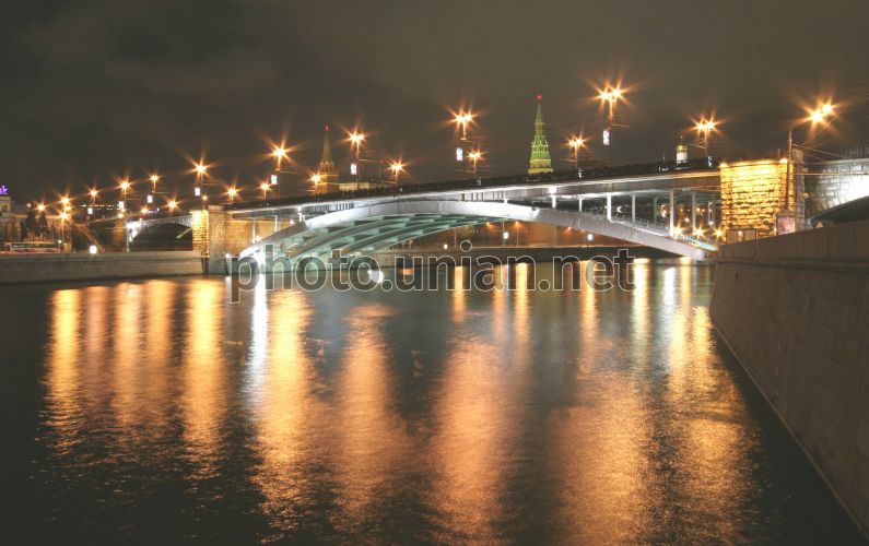 Панорама вечірнього Кремля в Москві (Росія), у вівторок, 2 грудня 2008 р. Московський Кремль — найдавніша частина Москви, головний суспільно-політичний, духовно-релігійний та історико-художній комплекс столиці, місцеперебування Президента Російської Федерації. Існуючі стіни і башти були побудовані у 1485 — 95. Загальна протяжність стін — 2235 м, висота від 5 до 19 м, товщина — від 3,5 до 6,5 м. У плані стіни утворюють собою неправильний трикутник. Уздовж стін розташовано 20 башт. 3 башти, що стоять в кутках трикутника, мають круглий перетин, інші — квадратний. Найвища башта — Троїцька, висотою 80 м. Більшість башт виконана в єдиному архітектурному стилі, доданому їм в другій половині XVII століття. Із загального ансамблю виділяється Никольська башта, яка на початку XIX століття була перебудована в готичному стилі. Фото Олексія Сувірова / УНІАН
