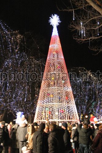 Жителі Дніпропетровська біля новорічної ялинки, виконаної в стилі high-tek, у понеділок, 22 грудня 2008 р. На майдані між Дніпропетровською обласною державною адміністрацією та обласною радою вперше відкрито 14-метрову ”губернаторську ялинку”, виконану в стилі high-tek. Металеву «губернаторську ялинку» привезли з Австрії. Сама ж техніка оздоблення символічного новорічного дерева нещодавно була презентована на виставці нових технологій у Франкфурті (Німеччині). Навколо «губернаторської ялинки» встановлені великі фігури лісових тварин та сніговиків, що світяться вночі. Дерева, що ростуть на площі між облдержадміністрацією та облрадою, оздоблені новорічними «мерехтливими вогнями» та ліхтариками, що створюють ефект зорепаду. Фото УНІАН