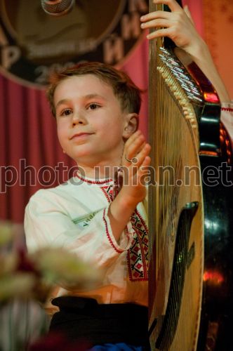 Учасник першого Всеукраїнського конкурсу-фестивалю «Хортицький Кобзар», присвяченого 195-й річниці з дня народження Тараса Шевченка, грає на бандурі, у Запоріжжі, у п’ятницю, 13 березня 2009 р. У конкурсі-фестивалі приймають участь 40 конкурсантів з 9 областей України. Фото Олександра Прилепи / УНІАН