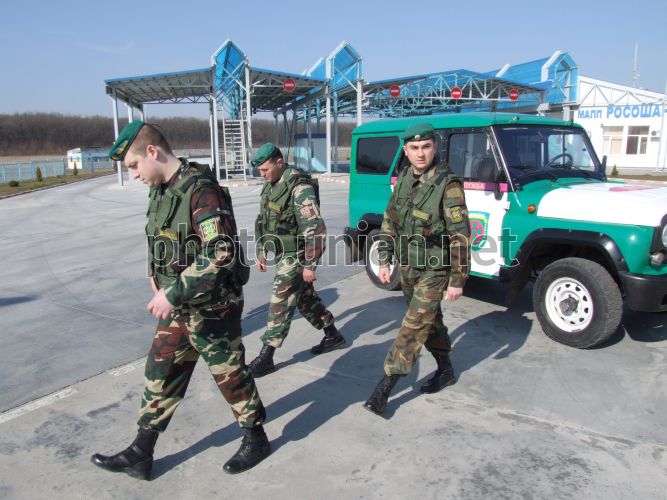 Бійці Чернівецького прикордонного загону на міжнародному автомобільному пункті пропуску “Росошани” (українсько-молдавський кордон, Кельменецький р-н Чернівецької обл.), в п’ятницю, 3 квітня 2009 р. Цього дня на МАПП “Росошани” вперше зустрілись прикордонники Чернівецького прикордонного загону з експертами польового офісу ”Атаки” (Молдова) спеціальної місії ”EUBAM” комісії Євросоюзу. Метою зустрічі було запровадження спільного патрулювання українсько-молдавського кордону на ділянці Чернівецького прикордонного загону. За словами начальника штабу Чернівецького прикордонного загону, в рамках проекту Держприкордонслужбою України вже отримано комп’ютерне обладнання та програмне забезпечення на суму 580 тис. євро. За його словами, також планується створення Регіонального тренінгового центру на базі Котовського прикордонного загону (Одеська обл.), на суму 1 млн. 615 тис. євро. Крім цього українська сторона отримає автомобілі високої прохідності, автобуси, тепловізори та радіокомутаційне обладнання на суму 2,5 млн. євро. Фото Сергія Зарайського / УНІАН