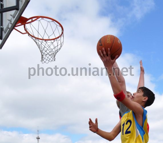 Учасники чемпіонату зі стрітболу ”Kharkiv Streetball battle” ведуть боротьбу за м’яч в Харкові, у суботу, 16 травня 2009 р. Стрітбол (вуличний баскетбол) з’явився у 1950-х рр. в бідних кварталах США. Дві команди грають на корті розміром в половину баскетбольного майданчика, забиваючи м’яч в одне і те ж кільце. Найпоширеніший вид стрітболу - 3 на 3 (у команді може бути 4 людини - 3 гравці і один запасний), проте в стрітбол грають і 2 на 2, і 1 на 1. Не існує єдиних правил стрітболу - учасники гри домовляються перед початком про правила, за якими проводитиметься гра. Гру 5 на 5, в два кільця на вулиці, також називають стрітболом. Правила 5 на 5 також відрізняються від правил класичного баскетболу, як і в решті різновидів стрітболу. Фото Ігоря Чекачкова / УНІАН