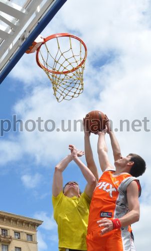 Учасники чемпіонату зі стрітболу ”Kharkiv Streetball battle” ведуть боротьбу за м’яч в Харкові, у суботу, 16 травня 2009 р. Стрітбол (вуличний баскетбол) з’явився у 1950-х рр. в бідних кварталах США. Дві команди грають на корті розміром в половину баскетбольного майданчика, забиваючи м’яч в одне і те ж кільце. Найпоширеніший вид стрітболу - 3 на 3 (у команді може бути 4 людини - 3 гравці і один запасний), проте в стрітбол грають і 2 на 2, і 1 на 1. Не існує єдиних правил стрітболу - учасники гри домовляються перед початком про правила, за якими проводитиметься гра. Гру 5 на 5, в два кільця на вулиці, також називають стрітболом. Правила 5 на 5 також відрізняються від правил класичного баскетболу, як і в решті різновидів стрітболу. Фото Ігоря Чекачкова / УНІАН