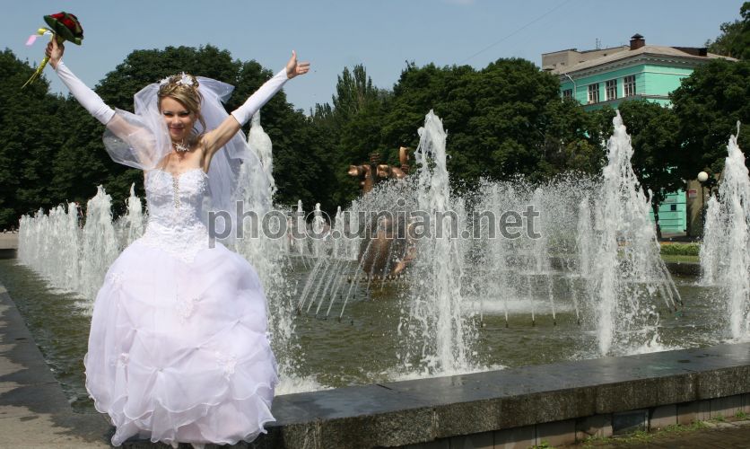 Учасниця костюмованого шоу «Карнавал кохання» у весільному платті, в Дніпропетровську, 28 червня 2009 р. На День молоді в Дніпропетровську вперше відбулося костюмоване шоу «Карнавал кохання», мета якого - підтримати хороші сімейні відносини городян. Всі, хто зв’язаний подружніми узами, прийшли на карнавал в білому. Також на заході були присутні у весільних платтях наречені, які заздалегідь подали заявки на участь. Фото Станіслава Сердюка / УНІАН