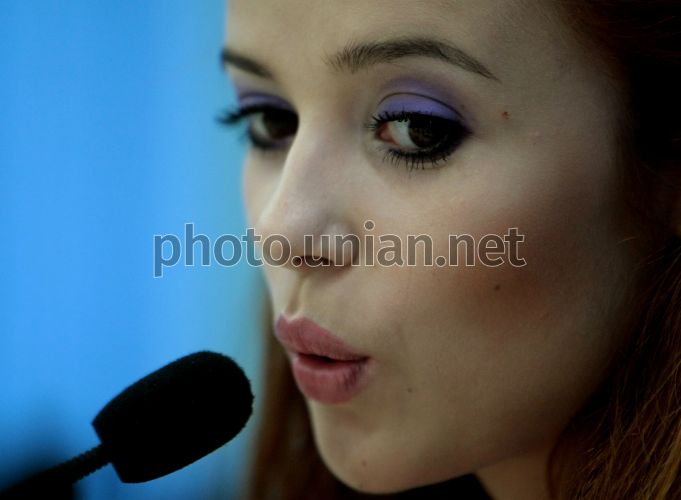 Українська співачка Міка Ньютон під час прес-конференції в УНІАН, в Києві, у четвер, 6 серпня 2009 р. Фото Сергія Светлицького / УНІАН