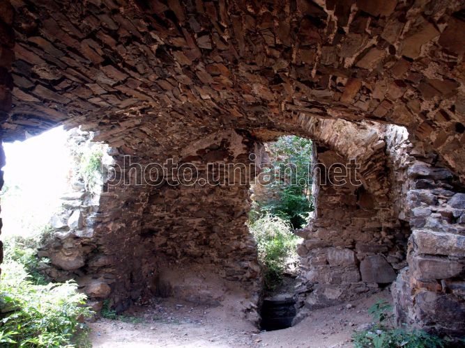 FILE Корецький замок у м. Корець (Рівненська обл.), у суботу, 25 липня 2009 р. Корецький замок розташований на гранітних скелях, що піднімаються на декілька десятків метрів над долиною річки з назвою Корчик. На цьому місці ще князь Острозькій побудував дерев’яний замок, а волинський воєвода Богуш Корецький в першій половині XVI в. укріпив його стінами. Регулярний, бастіонної системи замок з боку материка був оточений глибоким ровом з підйомним мостом, що вів до фортеці. У XVII—XVIII ст. замок істотно перебудували. Останню, найбільшу перебудову здійснили в 1780-х князі Чарторийські, внаслідок чого замок був пристосований під княжий палац з модним у той час барокковим декором. З тих часів дійшли до нас залишки зовнішніх кам’яних стін і арочний кам’яний міст. Частково збереглися і підземелля — обов’язкова багатофункціональна частина середньовічного замку. У 1832 р. в корецькому замку трапилася пожежа, і з тих пір його більше не відновлювали. Фото Володимира Андреєва / УНІАН
