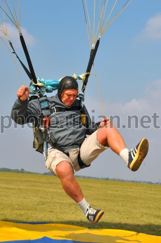 Учасник чемпіонату Харківської області зі стрибків з парашутом на точність приземлення сідає на землю, на аеродромі ”Коротич”, у суботу, 5 вересня 2009 р. На аеродромі ”Коротич” на базі Харківського аероклубу імені В.С. Гризодубової з 4 до 6 вересня 2009 року відбудеться міжнародний турнір ”Відкритий чемпіонат Харківської області зі стрибків з парашутом на точність приземлення”. У змаганнях беруть участь збірні команди України, Білорусі, Росії, Казахстану, клубів Збройних Сил України. Фото Ігоря Чекачкова / УНІАН