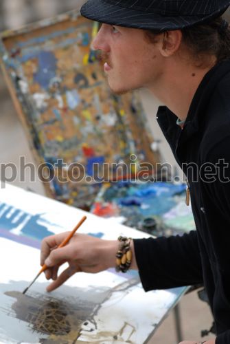 Художник Микита Кравцов малює на набережній в ході 12-го всеукраїнського Севастопольського художнього пленера, в Балаклаві (Крим), в середу, 2 вересня 2009 р. За минулі роки в місто-герой приїжджали немало іменитих художників. На цей раз до Севастополя також приїхала велика група заслужених і народних художників України. Фото Олександра Юрченка / УНИАН