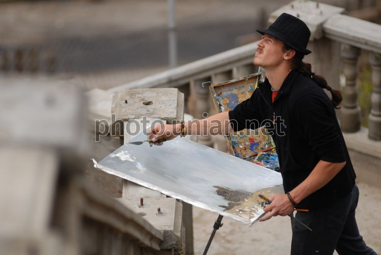 Художник Микита Кравцов малює на набережній в ході 12-го всеукраїнського Севастопольського художнього пленера, в Балаклаві (Крим), в середу, 2 вересня 2009 р. За минулі роки в місто-герой приїжджали немало іменитих художників. На цей раз до Севастополя також приїхала велика група заслужених і народних художників України. Фото Олександра Юрченка / УНИАН