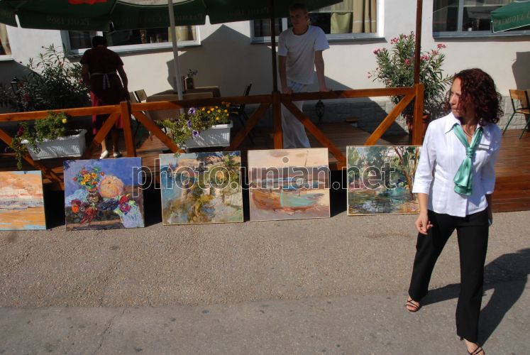 Готові роботи під час урочистого відкриття вернісажу в ході 12-го всеукраїнського Севастопольського художнього пленера, в Севастополі (Крим), в четвер, 24 вересня 2009 р. За минулі роки в місто-герой приїжджали немало іменитих художників. На цей раз до Севастополя також приїхала велика група заслужених і народних художників України. Фото Олександра Юрченка / УНИАН