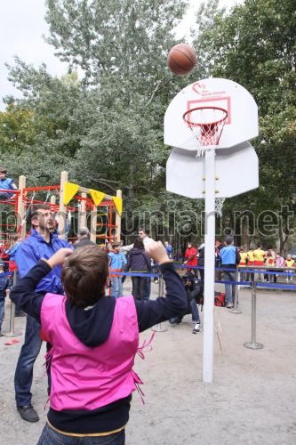 Хлопчик кидає м'яч у баскетбольну корзину під час проведення змагань в рамках проекту ”Клич друзів - граємо разом!” на одному з дитячих майданчиків у Києві, в суботу, 3 жовтня 2009 р. Фото Вальдемара Горлушка / УНІАН