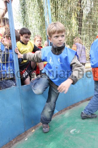 Хлопчик перестрибує через перешкодження під час проведення змагань в рамках проекту ”Клич друзів - граємо разом!” на одному з дитячих майданчиків у Києві, в суботу, 3 жовтня 2009 р. Фото Вальдемара Горлушка / УНІАН