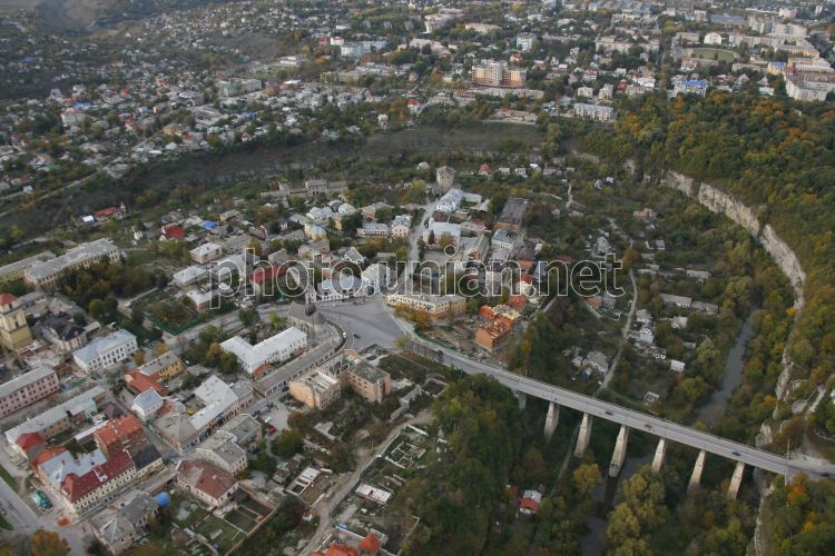 Місто з висоти пташиного польоту під час святкування 225-річчя повітроплавання в Україні, в Кам’янець - Подільському, в суботу, 17 жовтня 2009 р. В рамках програми фестивалю пройшов запуск повітряних куль та паперових повітряних куль пам’яті видатних повітроплавців. Крім того, пройшли театралізовані вистави та лазерне шоу. Фото Ірини Пустиннікової / УНІАН
