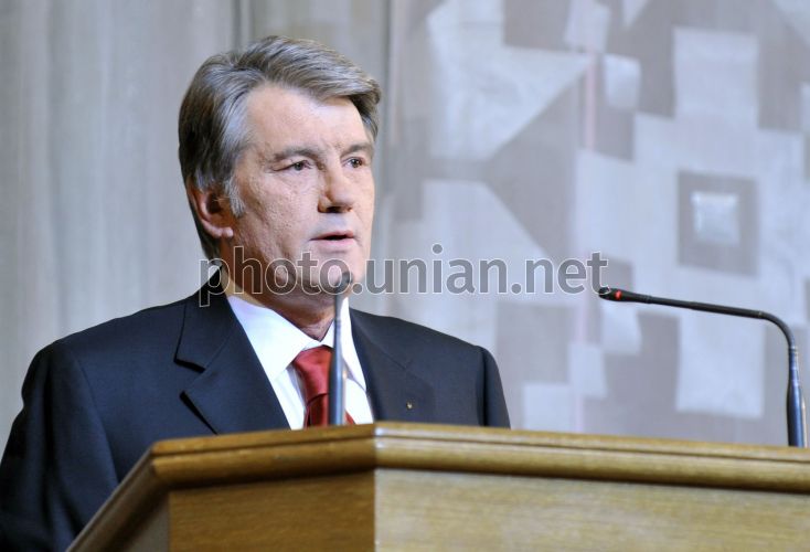 Президент України Віктор Ющенко виступає під час урочистостей з відзначення 175-річчя Київського національного університету ім. Тараса Шевченка, у Києві, в п'ятницю, 30 жовтня 2009 р. Фото Миколи Лазаренка / POOL / УНІАН