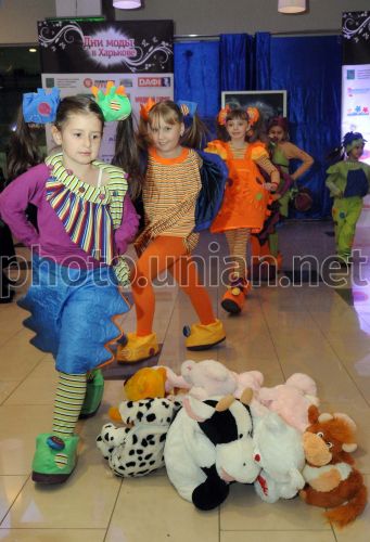 Діти-учасники одного з дитячих театрів моди демонструють новорічні костюми під час показу дитячого одягу в рамках «Днів моди», в Харкові, у суботу, 19 грудня 2009 р. Дизайнери, авторські салони та будинки моди представили свої колекції одягу до нового сезону в рамках «Днів моди в Харкові». Окремий день був присвячений дитячій моді і дитячим театрам моди. Закінчилися Дні конкурсом молодих дизайнерів Харкова. Фото Володимира Андреєва / УНІАН