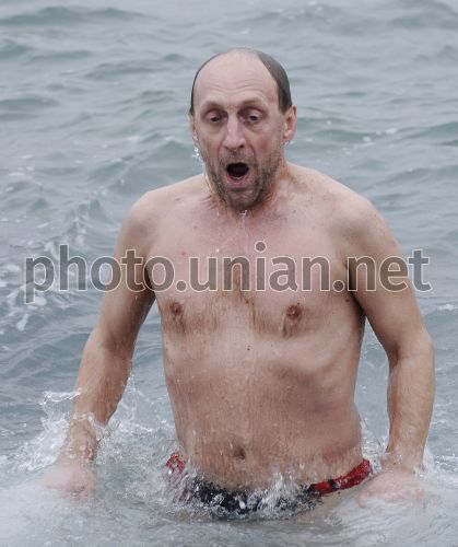 Чоловік виринає з води під час водохресного купання, в Севастополі (Крим), у вівторок, 19 січня 2010 р. Цього дня православні святкують Хрещення, або Богоявлення Господнє. Це третє свято, що завершує цикл Різдвяних свят. Церква розглядає Хрещення Господнє як «свято прояснення» народів, оскільки згідно її вчень, саме з Хрещення Ісус почав проповідь євангельської істини. Християнський світ відзначає свято Хрещення 19 січня. Його ще називають Йорданом. Йордань (від назви річки Йордан в Палестині) - народна назва християнського обряду освячення води. Хрещення відзначають на згадку про хрещення Ісуса Христа в Йордані, описаному в Євангеліях. Свято має і іншу назву – Богоявлення. Вранці (19 січня) в церквах святять воду. Вважається, що на Йордан вода набуває цілющих властивостей і зберігає їх протягом року, виліковуючи тілесні і духовні хвороби. Фото Андрія Любимова / УНІАН