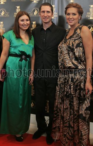 Президент ”Фонду підтримки молодіжного і олімпійського плавання”, чемпіон світу і Європи, чотирикратний володар Кубка світу з плавання, срібний призер Олімпійських ігор Денис Силантьєв з дружиною Інною, ліворуч, і чотирикратною олімпійською чемпіонкою з плавання Яною Клочковою на червоній доріжці перед початком урочистої церемонії вручення премії "Людина року-2009" у Києві, в суботу, 20 березня 2010 р. Лауреатами у 17 професійних номінаціях визнані найкращі представники регіональної, підприємницької, фінансової, медійної та гуманітарної сфер діяльності, які досягли в 2009 р., на думку численних експертів, найбільш вагомих успіхів у своїй професійній діяльності. Фото Олександра Синиці / УНІАН
