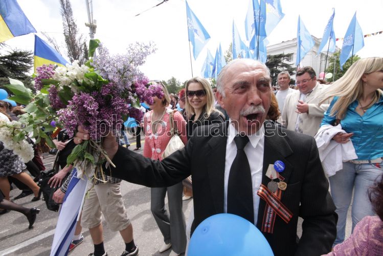 Учасники параду з нагоди 65-ї річниці Перемоги у Великій Вітчизняній війні, в Севастополі (Крим), в неділю, 9 травня 2010 р. У центрі Севастополя понад 50 тисяч чоловік - учасників Параду Переможців, проходження військ гарнізону, жителів і гостей міста - взяли участь у святкуванні 65-ї річниці Перемоги у Великій Вітчизняній війні і 66-ї річниці звільнення міста від німецько-фашистських загарбників. Фото Олексія Сувірова / УНІАН