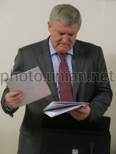 Міністр оборони України Михайло Єжель під час засідання Кабінету міністрів України, в Києві, в середу, 12 травня 2010 р. В ході засідання Прем’єр-міністр України повідомив про те, що Уряд впродовж поточного року планує, щонайменше, п’ять разів підвищувати мінімальні зарплати і посадові оклади в бюджетній сфері. При цьому він також повідомив, що на сьогоднішньому засіданні Кабмін планує ухвалити постанову, що регулює підвищення посадових окладів у бюджетній сфері, і уточнив, що, перш за все, підвищуватиметься тарифна ставка до посадового окладу для першого тарифного розряду Єдиної тарифної сітки. При цьому прем’єр-міністр зазначив, що підвищення посадових окладів буде здійснене для більш як 3,5 млн. працівників освіти, культури, охорони здоров’я, науки тощо. Фото Олександра Синиці / УНІАН
