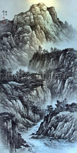 Картина майстра східного живопису Чанг Хуай Йонга на відкритті виставки, в Києві, в середу, 28 липня 2010 р. Китайський живопис відрізняється від західної не стільки набором технічних засобів, скільки принципово відмінною художньою мовою, більш умовною і декоративною. Пейзажний мир називають в Китаї жанром «Гори і Води». Із старовини китайці поклонялися горам і водам як святиням. У китайських пейзажах гори вважалися уособленням чоловічого начала Ян, і води як жіночого начала Інь. Із взаємодії Ян та Інь, за стародавніми уявленнями, виникає Всесвіт і її невід’ємним елементом є людина. Жанр «Гори і Води» - це уособлення єдності людини і природи. Майстер східного живопису також проведе в Києві навчальний курс з китайського живопису. Фото Олександра Синиці / УНІАН