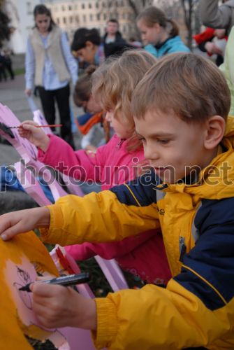 Діти розмальовують фігурки чоловічків під час акції ”Запали ліхтарик толерантності” в Києві, в неділю, 14 листопада 2010 р. Мета акції - проінформувати громадськість про цінність толерантності і багатокультурного суспільства. Під час акції пройшли творчі конкурси для дітей і молоді, танці, запалювання ліхтариків. Фото Олега Петрасюка / УНІАН
