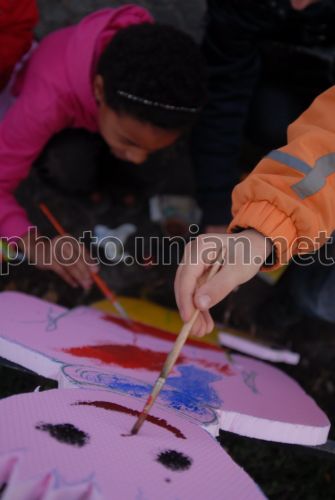 Діти розмальовують фігурки чоловічків під час акції ”Запали ліхтарик толерантності” в Києві, в неділю, 14 листопада 2010 р. Мета акції - проінформувати громадськість про цінність толерантності і багатокультурного суспільства. Під час акції пройшли творчі конкурси для дітей і молоді, танці, запалювання ліхтариків. Фото Олега Петрасюка / УНІАН