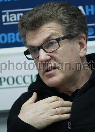 Російський актор Ігор Костолевський під час прес-конференції, присвяченої прем’єрі комедії ”Арт”, в Києві, у п’ятницю, 17 грудня 2010 р. Цього дня в Києві відбудеться спектакль «Арт» за п’єсою Ясміни Реза. Фото Михайла Койфмана / УНІАН