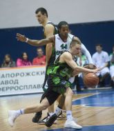 Центровий БК «Будівельник» (Київ) Михайло Анісімов (№14) під час матчу Суперліги України з баскетболу між БК ”Ферро-ЗНТУ” (Запоріжжя) і БК «Будівельник» (Київ), в Запоріжжі, в суботу, 18 грудня 2010 р. Матч закінчився з рахунком 82:65 на користь БК «Будевельник» (Київ). Фото Олександра Прилепи / УНІАН