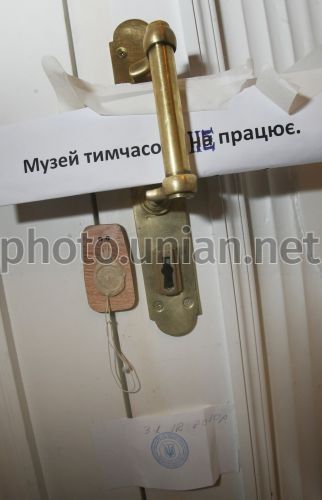Опечатані двері музею Української Народної Республіки в Києві, у вівторок, 11 січня 2011 р. За станом на 10 січня двері музею опечатані, музей закритий. Експозиція музею розповідає про український визвольний рух початку ХХ століття: період Української Народної Республіки, Української Держави (гетьманат), період Директорії УНР і завершується подіями Першого і Другого зимового походу армії УНР. Центром експозиції є оригінал 4-го Універсала Центральної Ради, яким проголошена повна державна незалежність УНР 22 січня 1918 р. Фото Володимира Гонтара / УНІАН