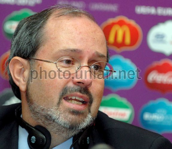 Голова Департаменту планування і продажу квитків УЄФА ЄВРО-2012 Педро Коррейя під час семінару з продажу квитків УЕФА ЄВРО-2012, в Києві, у вівторок, 1 лютого 2011 р. Учасники семінару повідомили про те, що квитки на матчі чемпіонату Європи з футболу 2012 року коштуватимуть від 30 до 600 євро. Цього дня почалася реєстрація на порталі продажу квитків на матчі Євро-2012. Прийом замовлень на квитки на матчі Євро-2012 почнеться 1 березня і завершиться 31 березня 2011 року. Після цього у середині квітня цього року відбудеться розиграш квитків в лотерею. Друкування і розповсюдження квитків на матчі Чемпіонату планується провести в квітні 2012 року, після цього вони будуть відправлені переможцям лотереї. Фото Олега Петрасюка / УНІАН