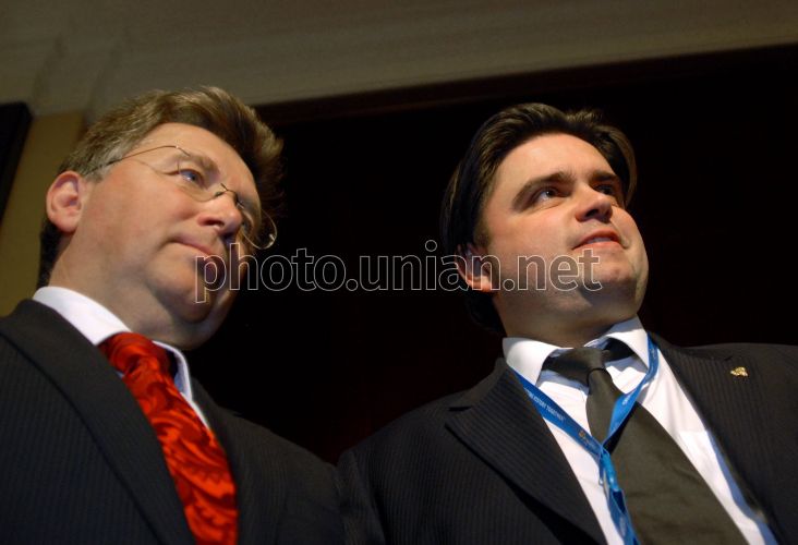 Операційний директор UEFA Events S.A. Мартін Каллен, ліворуч, і директор турніру ЄВРО-2012 в Україні Маркіян Лубкивській під час семінару з продажу квитків УЕФА ЄВРО-2012, в Києві, у вівторок, 1 лютого 2011 р. Учасники семінару повідомили про те, що квитки на матчі чемпіонату Європи з футболу 2012 року коштуватимуть від 30 до 600 євро. Цього дня почалася реєстрація на порталі продажу квитків на матчі Євро-2012. Прийом замовлень на квитки на матчі Євро-2012 почнеться 1 березня і завершиться 31 березня 2011 року. Після цього у середині квітня цього року відбудеться розиграш квитків в лотерею. Друкування і розповсюдження квитків на матчі Чемпіонату планується провести в квітні 2012 року, після цього вони будуть відправлені переможцям лотереї. Фото Олега Петрасюка / УНІАН