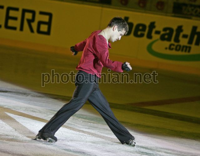 Фігуриси виступає під час церемонії урочистого відкриття після реконструкції Палацу спорту, в Києві, у п'ятницю, 15 квітня 2011 р. У Києві відкрито після реконструкції Палац спорту. Завершено лише перший етап технічного переоснащення київського Палацу спорту, який тривав із жовтня минулого року. Оновлення Палацу спорту відбувалося згідно з вимогами Регламенту чемпіонату світу з хокею в першому дивізіоні, де грає і збірна України. Фото Олександра Синиці / УНІАН