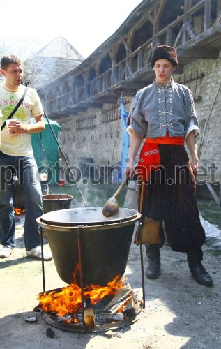 Учасник фестивалю "Дві фортеці" готує їжу в казані у Кам’янці-Подільському, в неділю, 1 травня 2011 р. Фестиваль проходить з 30 квітня по 3 травня. Фото Ірини Пустиннікової / УНІАН