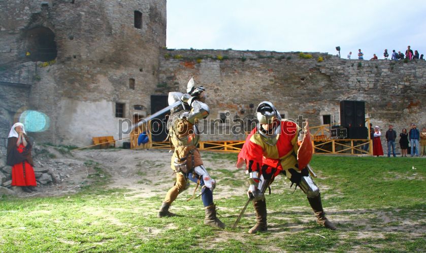 Члени військово-історичного клубу "Подільська Хоругва" Олексій Рєзін та Лев Сорочук б’ються на мечах на фестивалі "Дві фортеці" у Кам’янці-Подільському, в неділю, 1 травня 2011 р. Фестиваль проходить з 30 квітня по 3 травня. Фото Ірини Пустиннікової / УНІАН