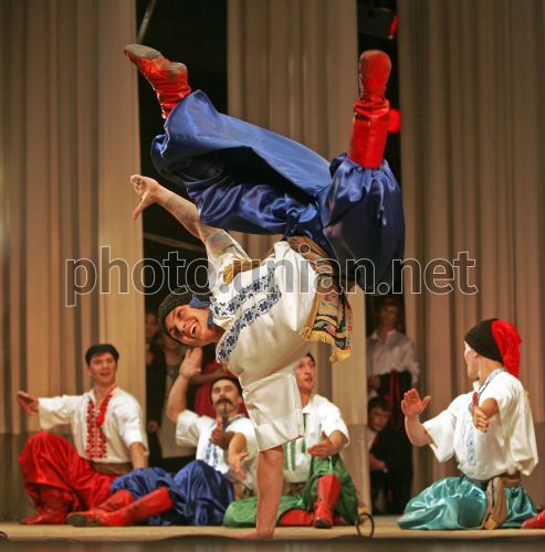 Танець з бубнами у виконанні чоловічої групи Національного заслуженого академічного ансамблю танцю України ім. Павла Вірського під час концерту в рамках урочистого прийому з нагоди святкування Дня Росії, у Посольстві Росії в Україні, в Києві, у п'ятницю,10 червня 2011 р. Цього дня у Києві відзначили День Росії. З нагоди державного свята РФ відбувся урочистий прийом, що завершився святковим концертом. Фото Олександра Синиці / УНІАН