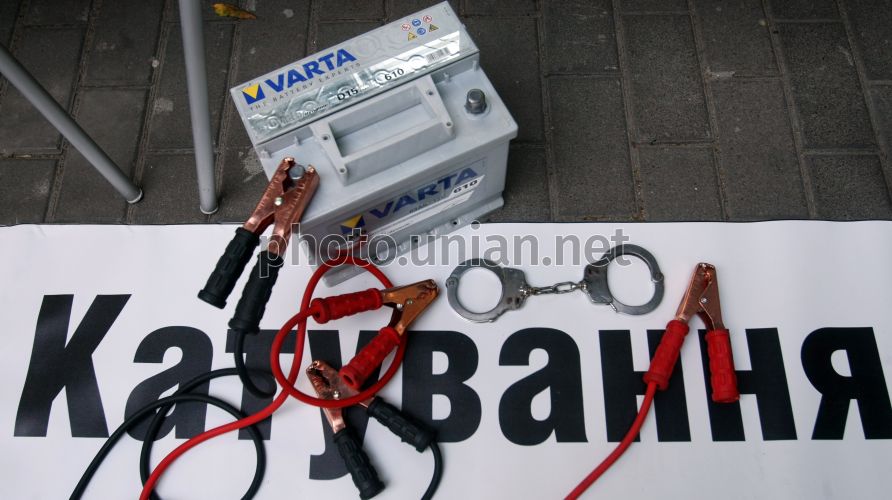Знаряддя катувань за допомогою електроструму під час акції проти тортур, в Києві, в середу, 23 червня 2011 р. Цього дня під стінами Генеральної прокуратури відбулася акція, присвячена Міжнародному дню на підтримку жертв тортур. У рамках акції організатори ознайомили громадян з сучасними знаряддями тортур, які, за їхніми словами, застосовують українські міліціонери. Подібні акції заплановані в Харкові, Сімферополі, Чернігові, Донецьку, Луганську та інших містах України.Міжнародний день у підтримку жертв тортур, проголошений Генеральною Асамблеєю ООН 12 грудня 1997 року, відзначається 26 червня. Тортури - це однo з грубих порушень прав людини, який засуджується всіма міжнародними угодами з прав людини.Фото Володимира Гонтара / УНІАН