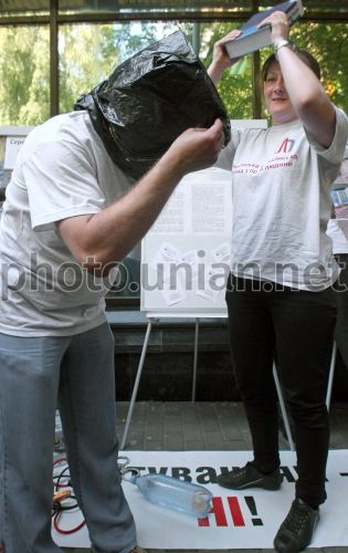 Учасники акції проти тортур, в Києві, в середу, 23 червня 2011 р. Цього дня під стінами Генеральної прокуратури відбулася акція, присвячена Міжнародному дню на підтримку жертв тортур. У рамках акції організатори ознайомили громадян з сучасними знаряддями тортур, які, за їхніми словами, застосовують українські міліціонери. Подібні акції заплановані в Харкові, Сімферополі, Чернігові, Донецьку, Луганську та інших містах України.Міжнародний день у підтримку жертв тортур, проголошений Генеральною Асамблеєю ООН 12 грудня 1997 року, відзначається 26 червня. Тортури - це однo з грубих порушень прав людини, який засуджується всіма міжнародними угодами з прав людини.Фото Володимира Гонтара / УНІАН