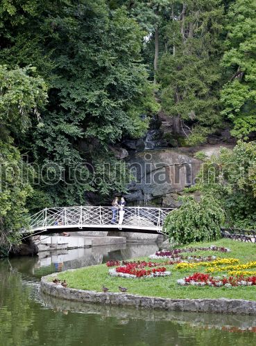 Дівчата розмовляють на мосту в Національному дендрологічному парку «Софіївка», в м. Умань (Черкаської обл.), у четвер, 4 серпня 2011 р. Парк «Софіївка» є пам'ятником краєвидного типу світового садово-паркового мистецтва кінця XVIII — першої половини XIX ст. Тут росте понад 2000 видів дерев і кущів (місцевих і екзотичних). Парк «Софіївка» заснований у 1796 році власником Умані Станіславом Потоцьким та названий на честь його дружини Софії Вітт-Потоцької. За задумом архітектора, парк є наочною ілюстрацією до окремих частин поем Гомера «Іліада» та «Одіссея». В основу композиційного рішення центральної частини парку покладені сюжети з міфології Стародавньої Греції та Риму, а деякі місця нагадують оселю грецьких богів, героїв, письменників та філософів. Фото Олексія Чернишова / УНІАН