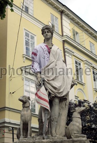 Статуя Діани, одягнена у вишиванку, в центрі Львова, у вівторок, 23 серпня 2011 р. Цього дня у Львові відзначили Свято вишиванки. У вишивані сорочки одягнули скульптури-фонтани в центрі міста. Також влада закликала львів'ян одягнути цього дня національні вбрання. Акція була присвячена до Дня Державного Прапора України, який відзначається щорічно 23 серпня. Фото Вадима Голуба / УНІАН