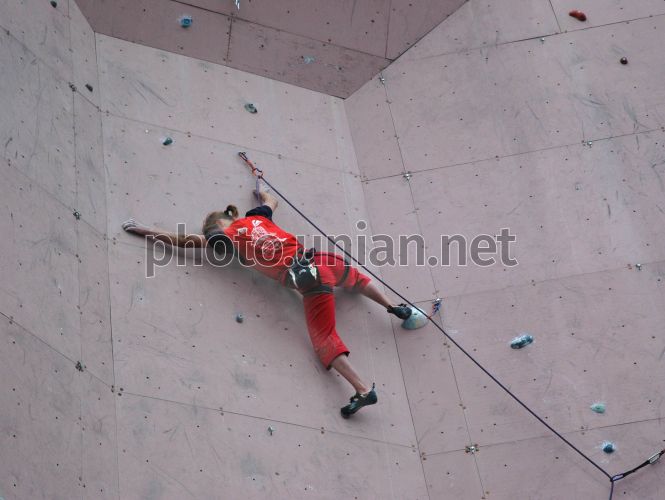 COMM Учасник чемпіонату зі скелелазіння піднімається вгору в Одесі в суботу, 27 травня 2006 р. У чемпіонаті беруть участь 84 спортсмени з 12 міст України (з них 29 жінок і 6 чемпіонів світу) Фото МАХА / УНІАН