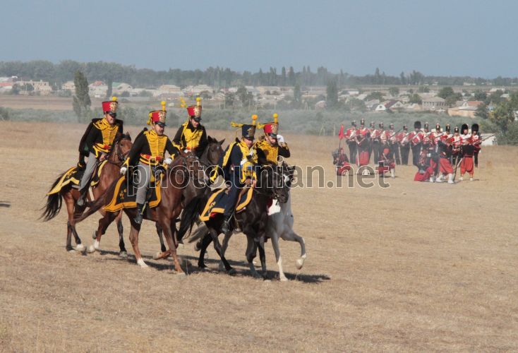 Учасники військово-історичної реконструкції, присвяченої Альмінському бою, в селі Віліно (Бахчисарайський район, Крим), в неділю, 25 вересня 2011р. Реконструкція бою проходила на березі річки Альма. На полі Альмінської битви відбулася битва-провісниця героїчної Севастопольської жнив. Саме на Альмінському полі вперше схрестили багнети російські та британські війська. Альмінська битва - це перша велика битва Кримської війни 1853 - 1856 років. Вона відбулася у вересні 1854 року між військами коаліції Великобританії, Франції та Туреччини з одного боку, і Росії - з іншого. Перемогу в Альмінській битві отримали війська коаліції. Фото Олексія Сувірова / УНІАН