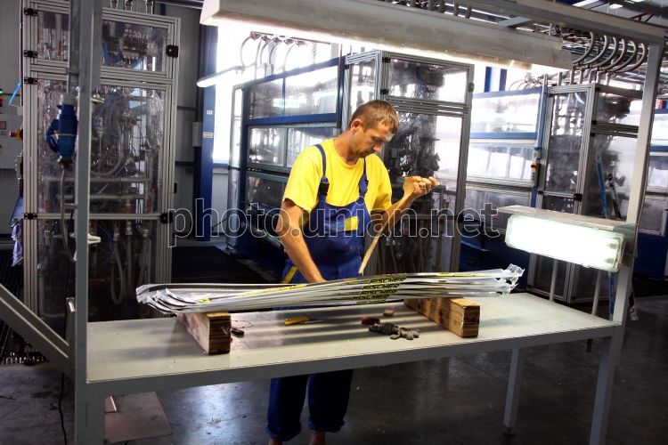 Працівник одного з цехів Українсько-австрійського підприємства ТОВ "Фішер-Мукачево" запаковує вже готові лижі, в Мукачеві (Закарпатська обл.), у вівторок, 27 вересня 2011 р. ТОВ "Фішер-Мукачево" - високотехнологічне і найсучасніше в галузі підприємство з виробництва гірських і бігових лиж, хокейних ключок і т.п. Компанія експортує продукцію більш ніж в 20 країн і забезпечує, в окремих сегментах ринку, 60% її світового обігу. Географія реалізації виготовлених в Мукачеві товарів розповсюджується на Росію, Північну Америку, Західну і Східну Європу, Скандинавські країни, Японію і Корею. На підприємстві роботою забезпечено 1200 осіб. Фото Яноша Немеша / УНІАН