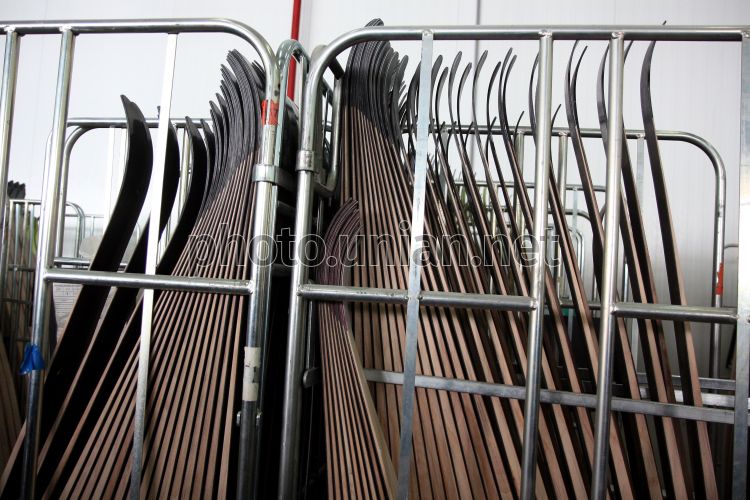 Заготовки лиж в одному з цехів на Українсько-Австрійському підприємстві ТОВ "Фішер-Мукачево", в Мукачеві (Закарпатська обл.), у вівторок, 27 вересня 2011 р. ТОВ "Фішер-Мукачево" - високотехнологічне і найсучасніше в галузі підприємство з виробництва гірських і бігових лиж, хокейних ключок і т.п. Компанія експортує продукцію більш ніж в 20 країн і забезпечує, в окремих сегментах ринку, 60% її світового обігу. Географія реалізації виготовлених в Мукачеві товарів розповсюджується на Росію, Північну Америку, Західну і Східну Європу, Скандинавські країни, Японію і Корею. На підприємстві роботою забезпечено 1200 осіб. Фото Яноша Немеша / УНІАН