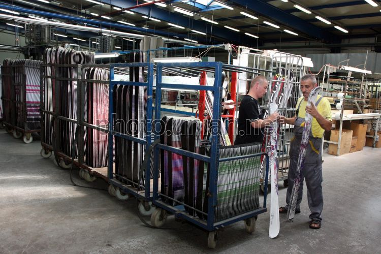 Цех з виготовлення лиж на Українсько-Австрійському підприємстві ТОВ "Фішер-Мукачево", в Мукачеві (Закарпатська обл.), у вівторок, 27 вересня 2011 р. ТОВ "Фішер-Мукачево" - високотехнологічне і найсучасніше в галузі підприємство з виробництва гірських і бігових лиж, хокейних ключок і т.п. Компанія експортує продукцію більш ніж в 20 країн і забезпечує, в окремих сегментах ринку, 60% її світового обігу. Географія реалізації виготовлених в Мукачеві товарів розповсюджується на Росію, Північну Америку, Західну і Східну Європу, Скандинавські країни, Японію і Корею. На підприємстві роботою забезпечено 1200 осіб. Фото Яноша Немеша / УНІАН