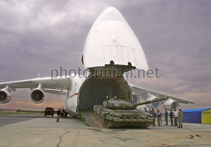 Танк Т-72 виїжджає з літака АН-225 ”Мрія”